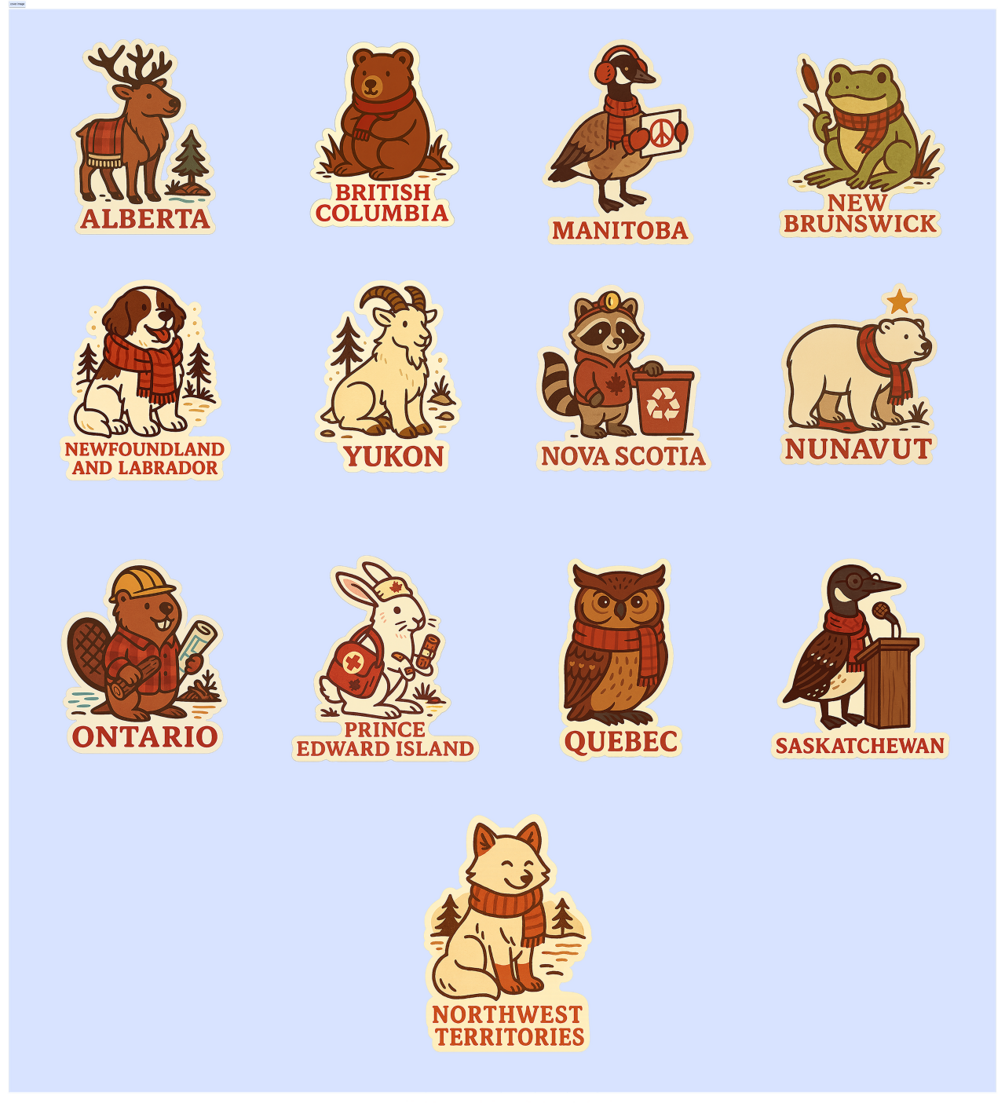 Each character in this collection reflects the unique spirit of its province or territory. You can download these digital stickers for free, just enter $0 in the price field.